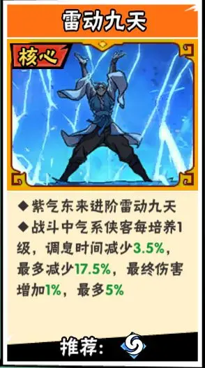 气系5个三阶功法中,如果少侠用的是气系主c,那么很推荐选择三阶核心【雷动九天】,疾风阵容强烈推荐三阶【云梦决】【小无相功】【主c核心】减调息搭配使用。少侠也可以通过带相关侠客、玉佩,堆攻击概率不消耗次数。