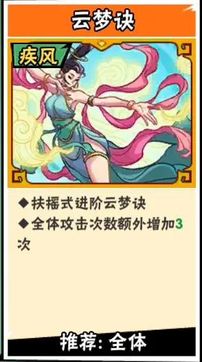 评价:上官南、竹叶姬等自带攻击有概率不消耗次数,且还有玉佩技能,配合云梦决,真正做到永动机!