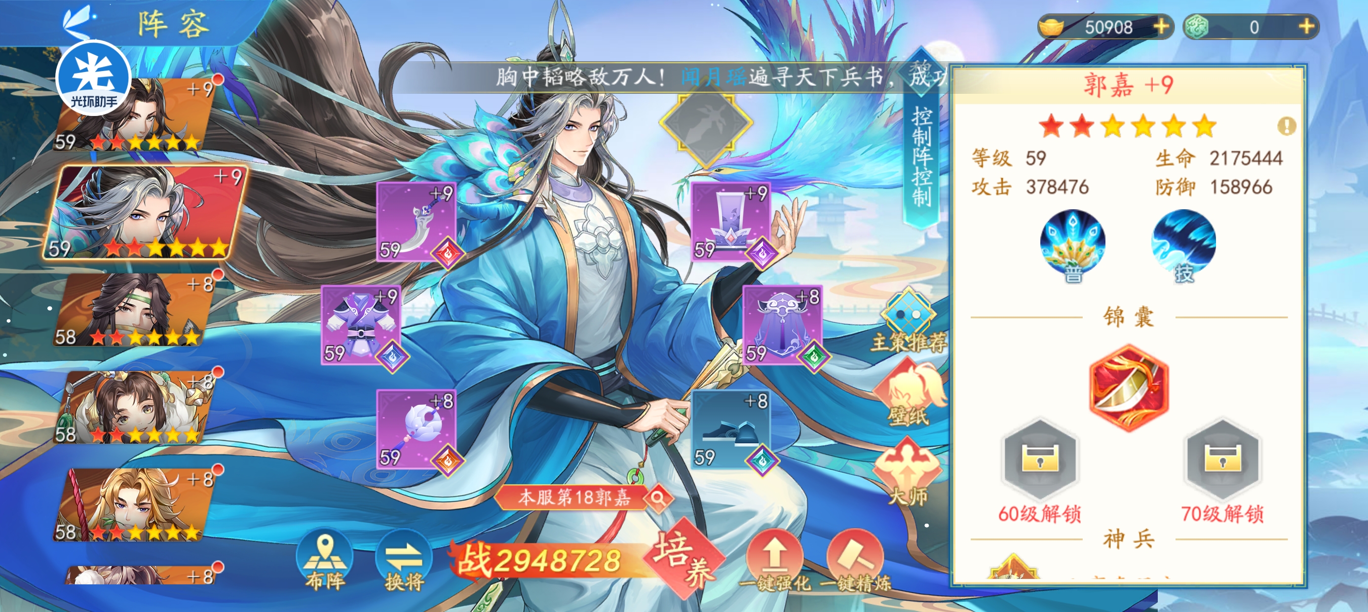 有条件竞拍到郭嘉极品锦囊一定要搭配【攻其不备】