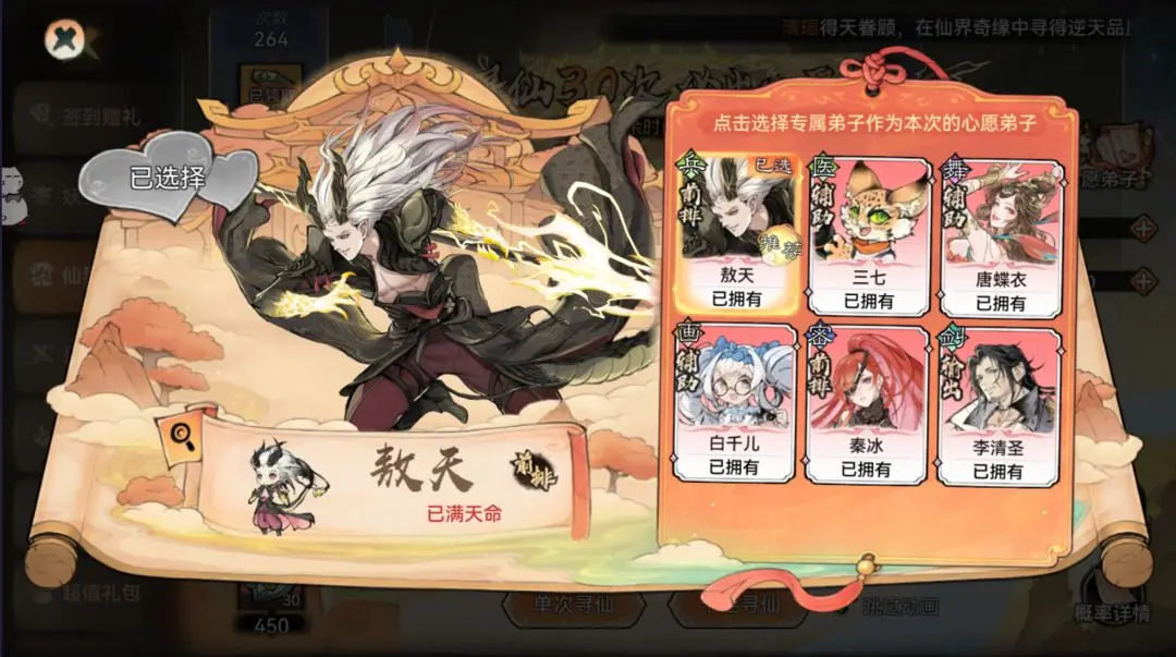 仙界奇缘(弟子抽取界面):
