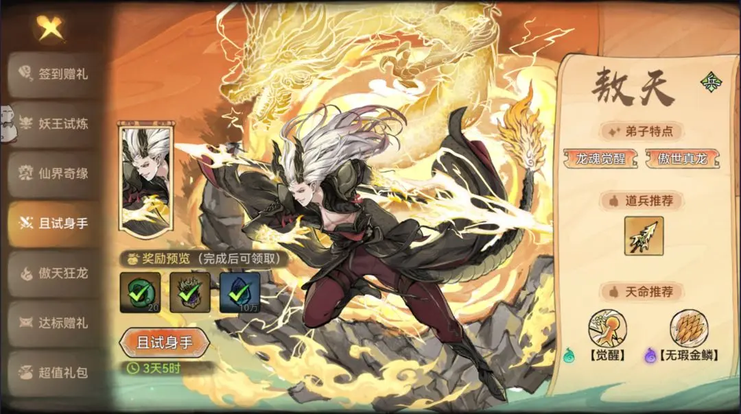 最强祖师推出新弟子啦!相信大家已经听到了不少传言了,“小龙人敖天据说十分强力,奔着一打五的节奏去了”,贫道马不停蹄去先遣服测验了下,有些经验分享给大家。贫道给大家带来仙缘弟子敖天活动的内容分享。话不多说,敖天镇楼