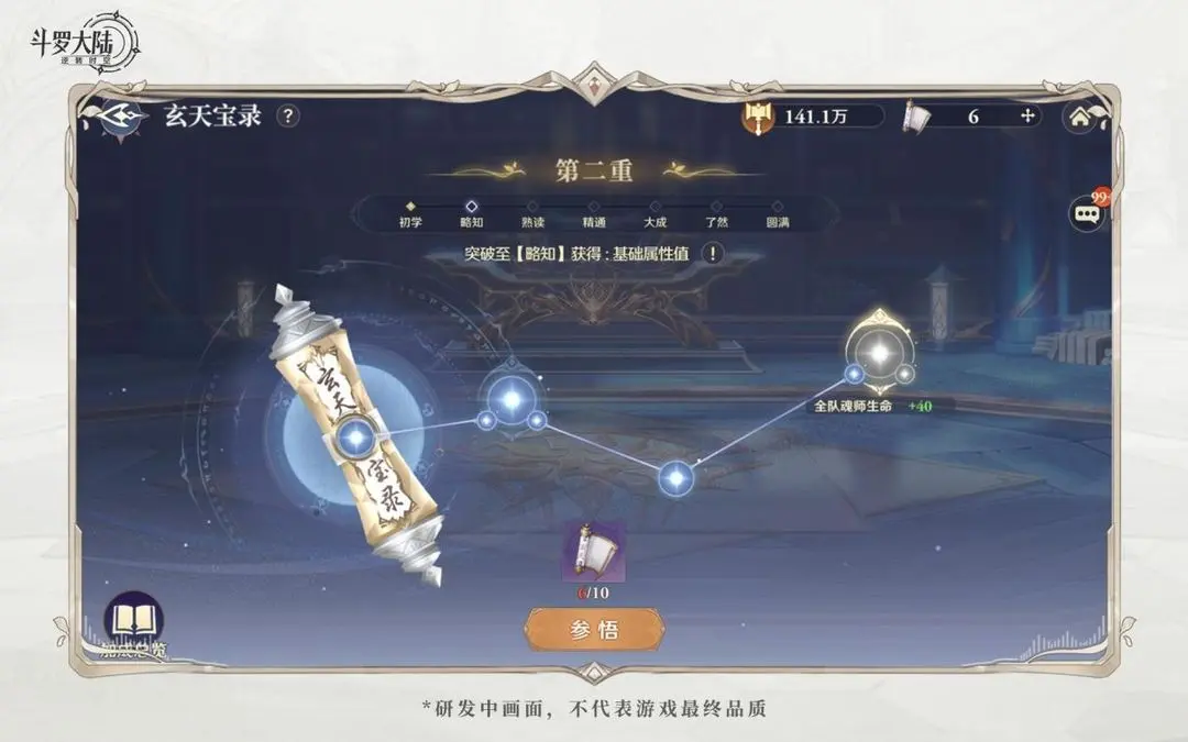 2、修炼玄天宝录,可提升全体上阵魂师属性。也有一定的战力加成!