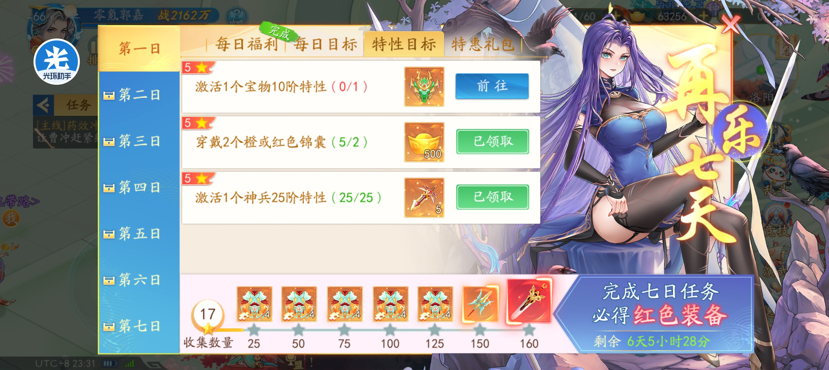 基本上做到以上,就可以白嫖完第二轮的七天乐活动了,一般看自己情况,如果某些环节已经提前做了,就可以开始准备下一个环节任务,适当的使用一点元宝也是可以的。