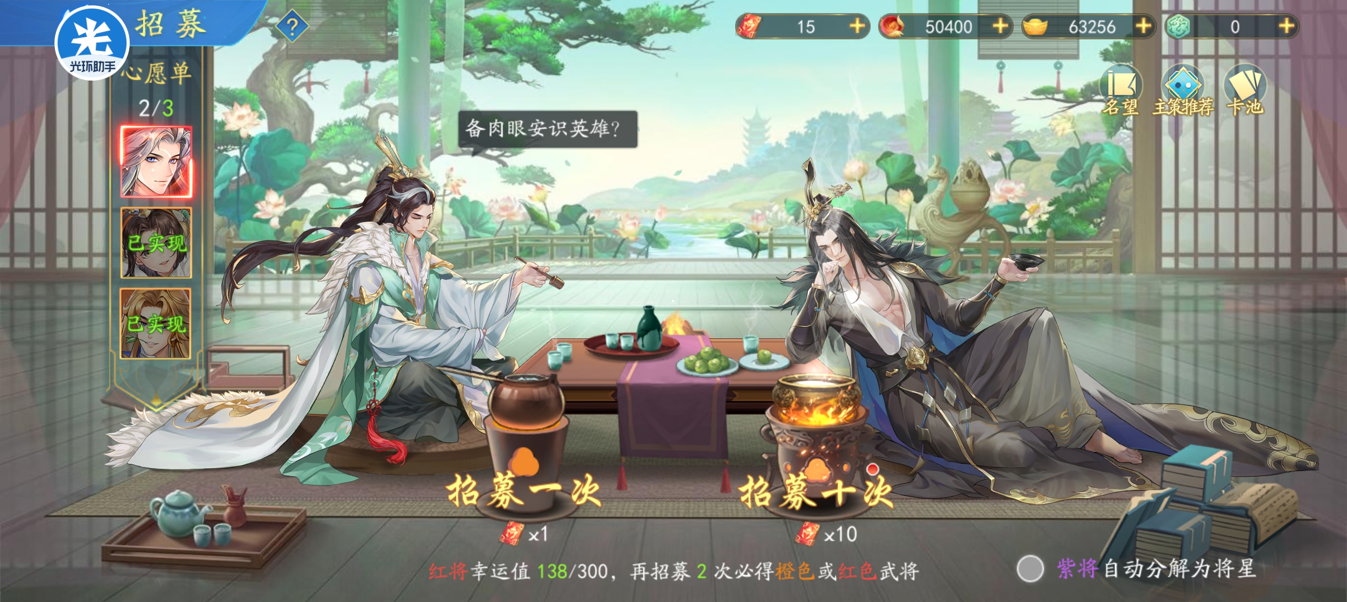 另外,商城也没什么买的主要就是买买武将碎片所有阵营都可以买用来开声望加成还有后期3队阵容这几天战力提升都不大。
