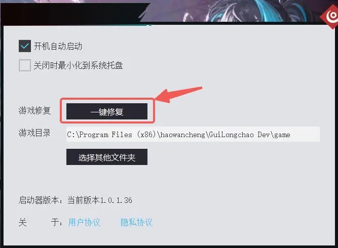 A:如遇以上问题,可以尝试关闭游戏客户端并在启动器界面点击右上角设置》一键修复按钮尝试解决,若一直报错,请尝试重新安装启动器。