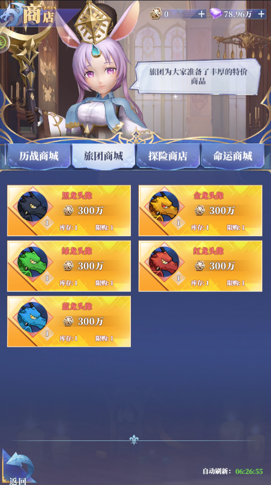 1.旅团成员可以使用旅团币在旅团商店里购买专属物资,物资每天凌晨0点刷新。