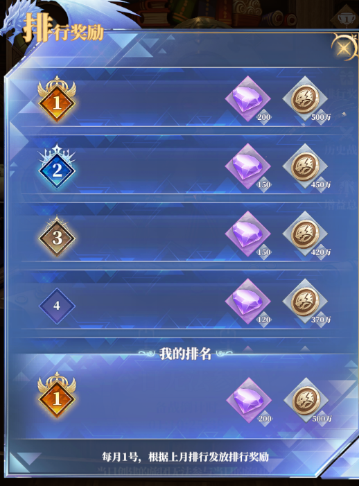 7.每月1号会根据旅团排名发放排行奖励,能获得海量钻石与金币。