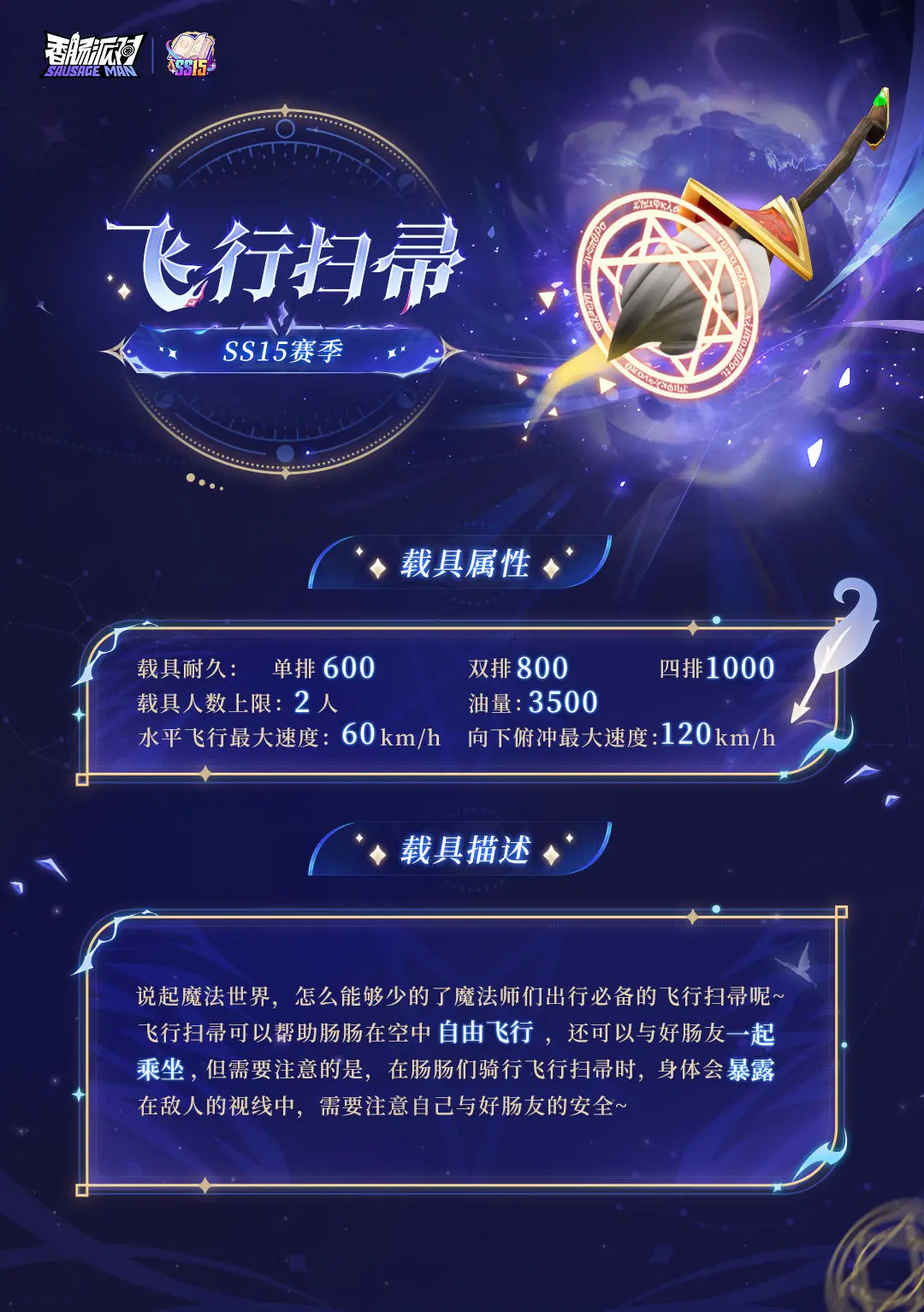 此外肠肠们也需要注意,乘坐飞行扫帚时肠肠与肠友将暴露在敌人的视线中,容易受到敌人的攻击,一定要注意安全哦~