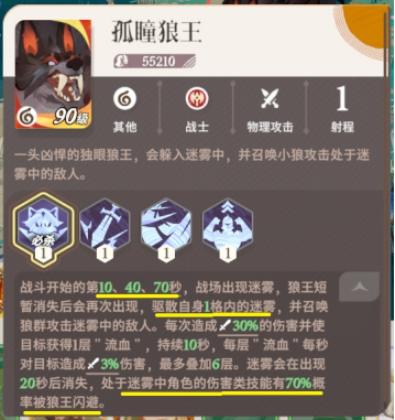 狼王技能说明写的是玩家远程技能miss