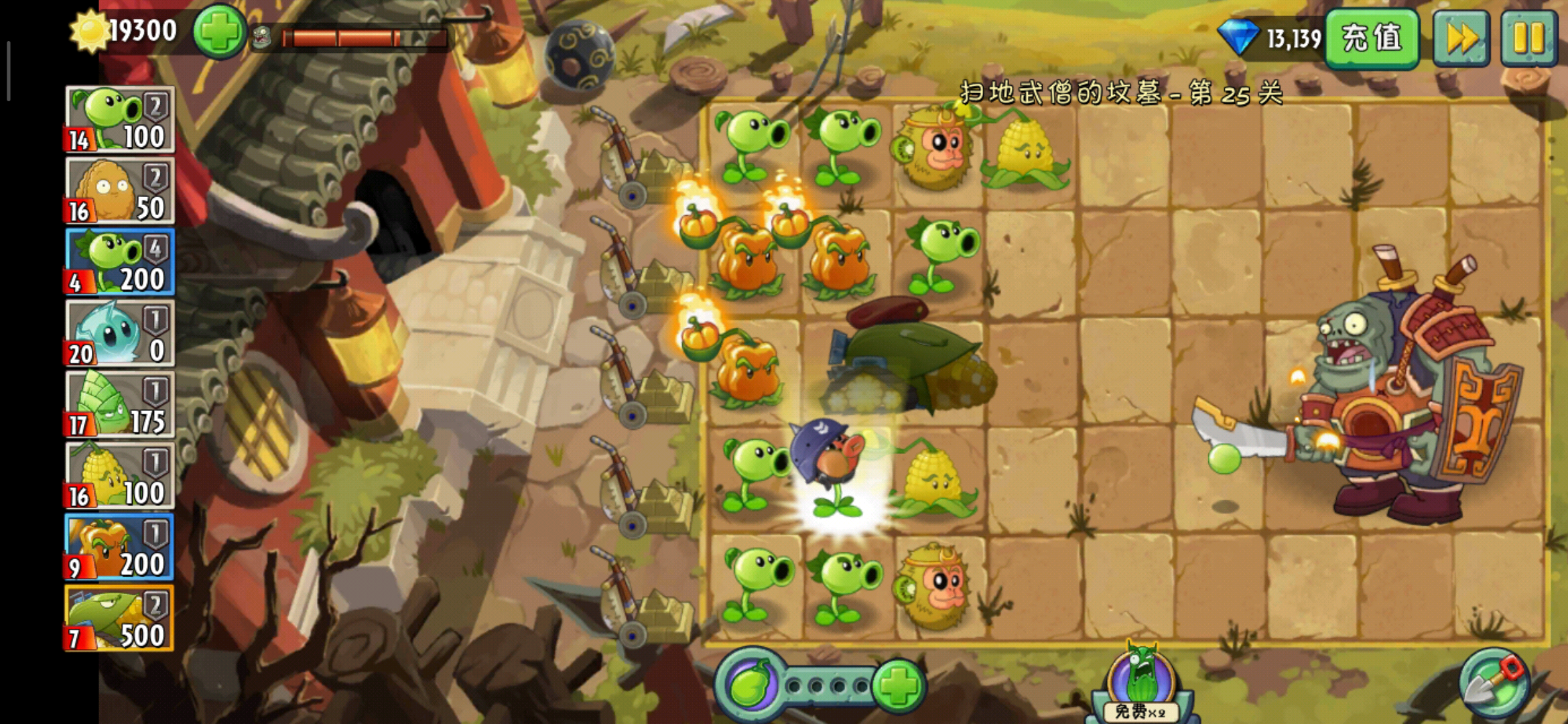 对于植物池比较浅的玩家,没有太多高阶植物。那么这第25关就算是极限了,在进入25关的的时候,一次伤害型植物都装上,当成手雷一样丢就完了,用大量植物堆伤害,慢慢磨掉boss。成功通关了25关,那么第30关的boss关可以放一下了,把26-29关闯过去加一下积分,第三十关打一打意思意思就可以了。