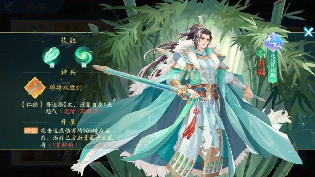 角色概述:首先登场的是人气王刘老板刘备,作为一名辅助,和他重复位置的是当前版本的徐庶,刘备与之相比拥有更高的连携概率以及五星之后可以做到一拖三,解放一名连携辅助的位置用来上对策卡。