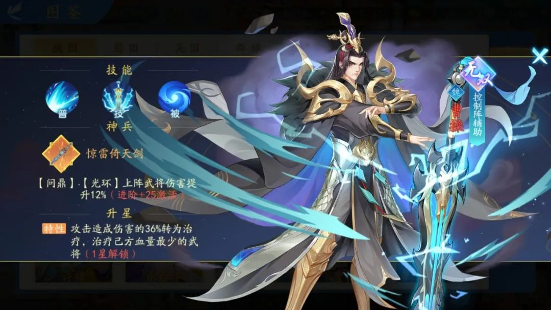 角色概述:魏国曹老板曹操,人气和实力有着绝对的正比例,是魏国的崛起之光,同时也是低氪玩家的福音,魏国最强的特性被动控制减2怒零星即可获得,而且每一颗星的价格都是实打实对于控制和回怒有着不菲的加强。