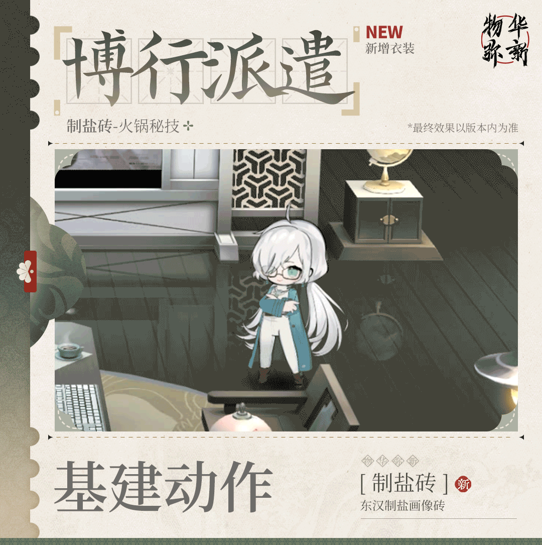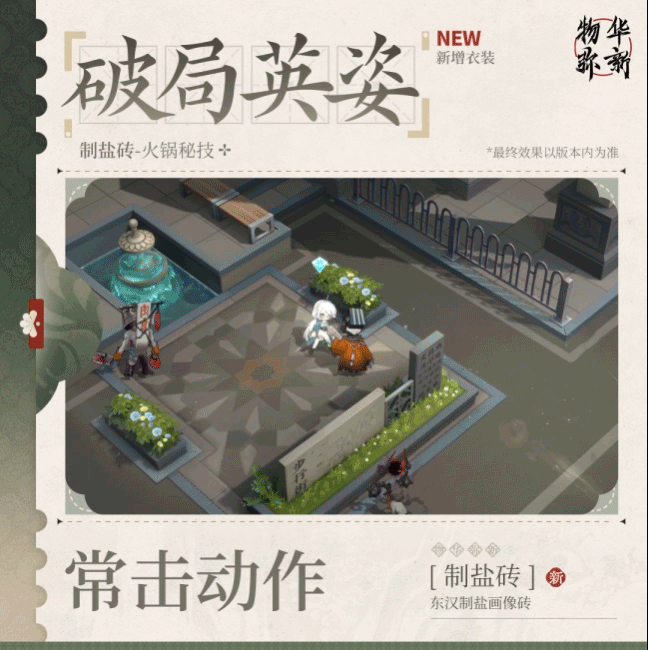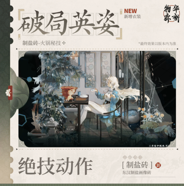 幸食系列衣装|制盐砖「火锅秘技」光环资讯 - 二次元发布于 2024-04-13关注 四川人咋个吃火锅?薄片过烫,厚块要煮,先肉后菜,油碟打底再加辣,哎呀,巴适得板!*收集该衣装,即可拥有制盐砖全新破局英姿、破局音效、派遣公司休闲动作。4月19日公测开服后,此衣装可通过解锁【游历·瑞牒】获取。
