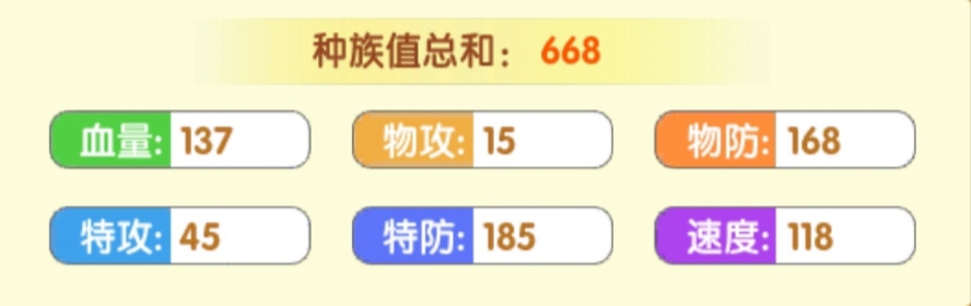 种族值分析:从种族值可以看来,闪光月精灵定位是一个防御型的宝可梦,特防185优于物防,所以我们选择极限特防,血量135中规中矩,速度线保证我们可以快过大王。