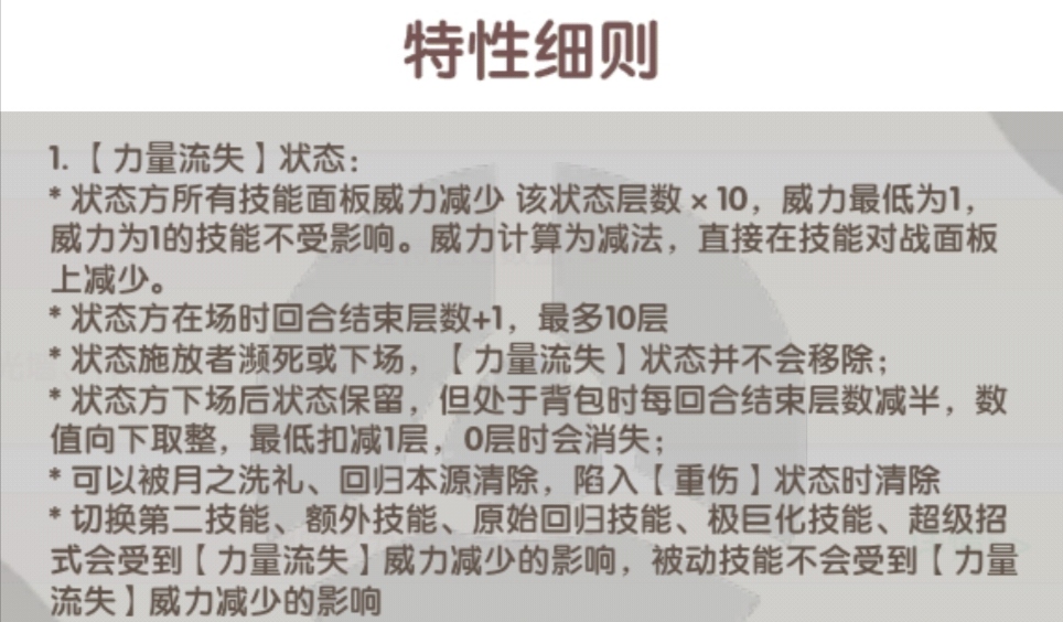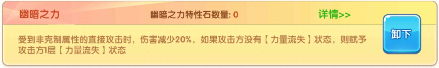 ·受到非克制属性的直接攻击时,伤害减少20%,且赋予攻击方一层[力量流失]状态。这也契合了恶食大王的打击面,能完美运用月精灵的新特性。