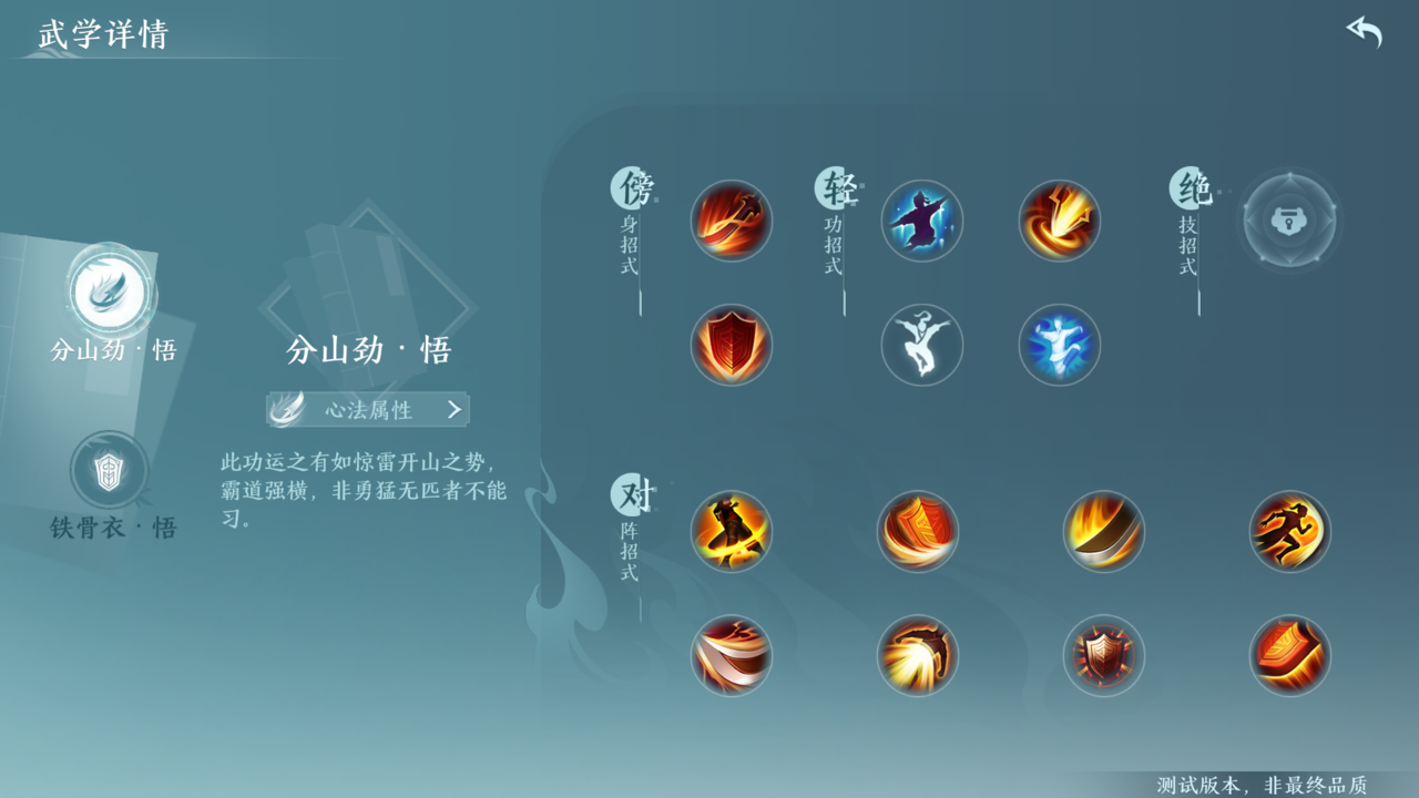 苍云武学主要由昙宗大师传下,演化出《铁骨衣》。《分山劲》乃李靖以刀盾结合,经历代高手琢磨而成的外家功夫。