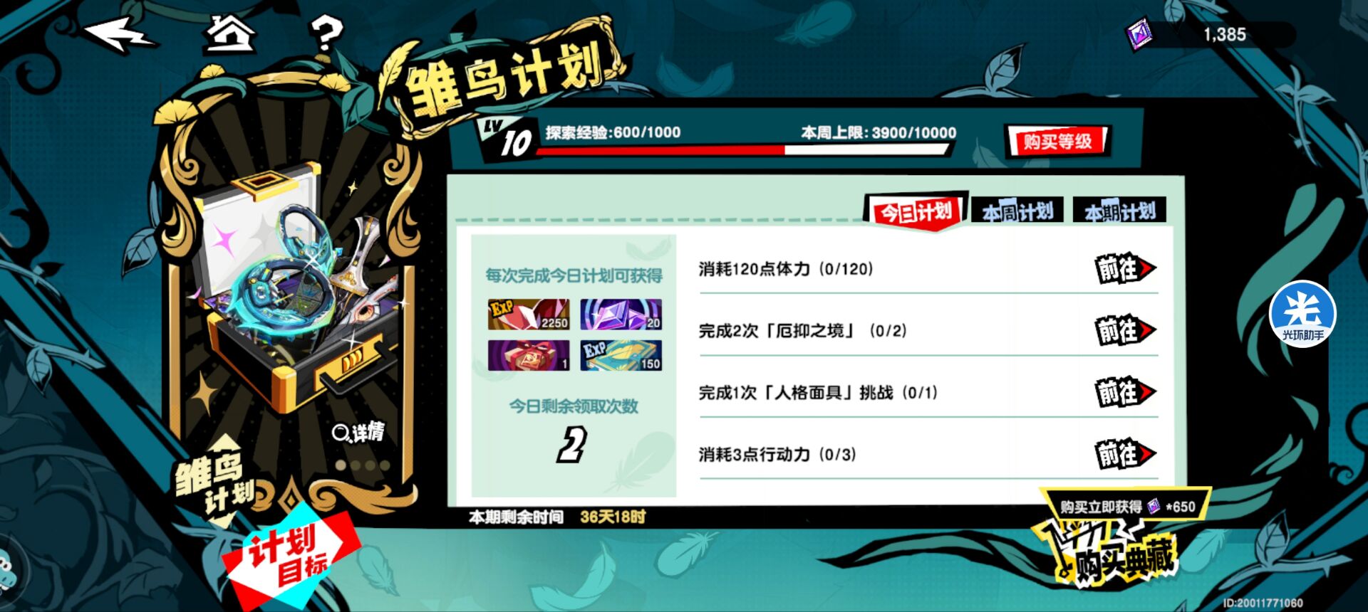 1:上线以后老样子,先清第三天的【雏鸟计划】一个也不能落下,能够给我们提升很多的主角经验!然后看下体力和精力是不是满了,满的话先清一些体力和精力,这样就不会浪费。