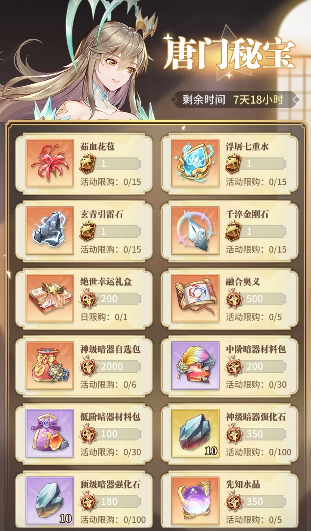 「名匠徽记」及「星宿共鸣」,可在「唐门秘宝」活动中兑换稀有奖励!
