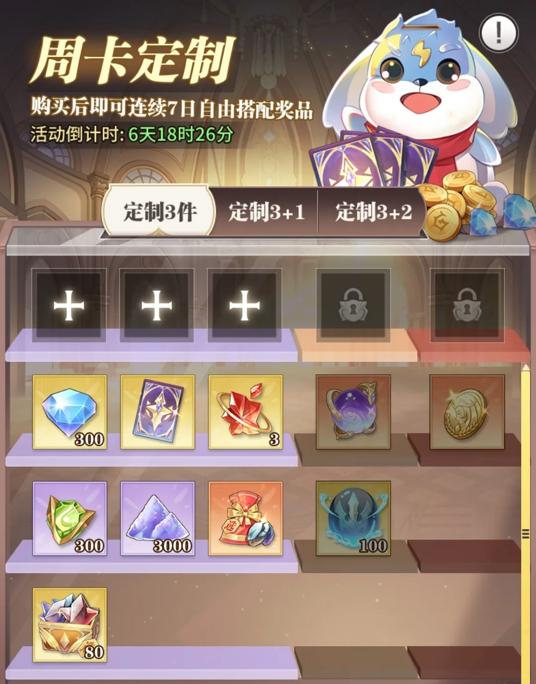 活动期间可选择不同档位激活周卡,连续7日每日可选择并领取奖励~