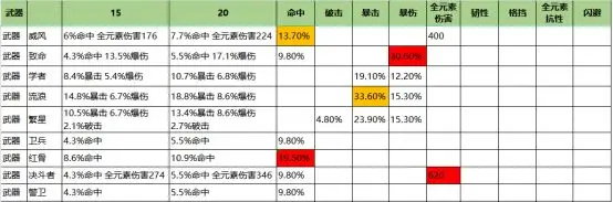 注:表格里元素伤害与元素抗性为推算值,可能会存在误差但不会很大,大家拿来参考是没问题的~