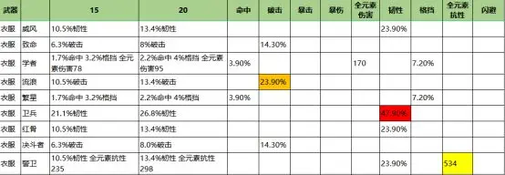 抛开套装效果暂且不提,首先为大家讲一下怎么去看这个装备数据表以及怎么去提前筹备你的角色所需的装备。