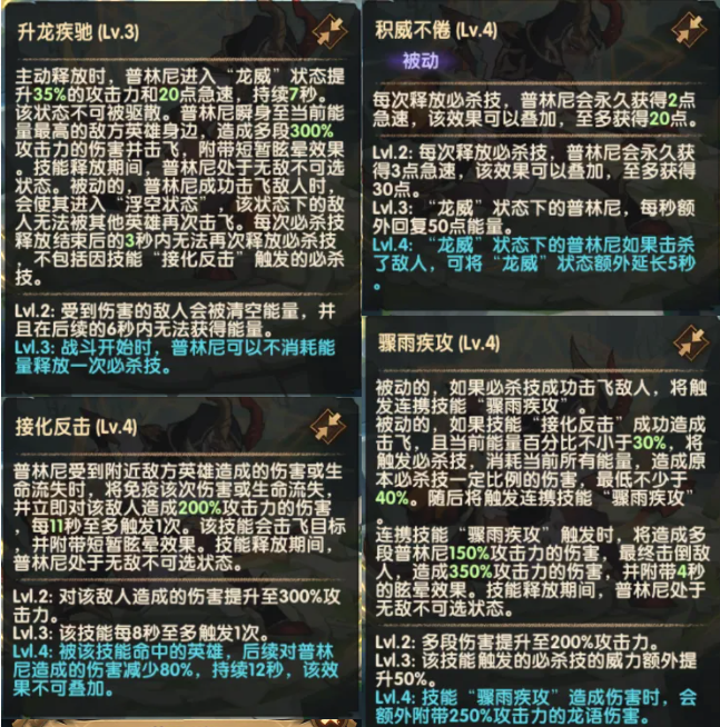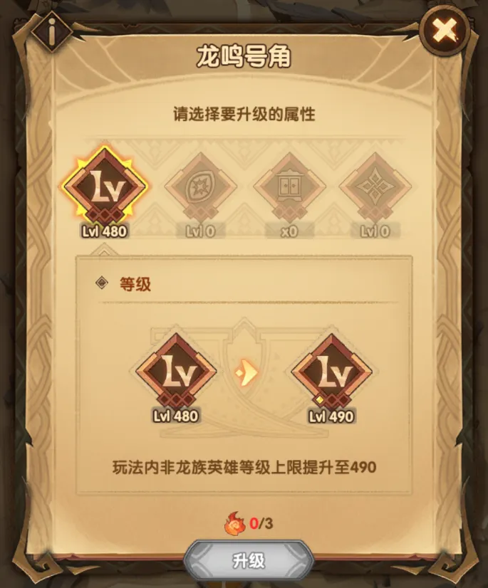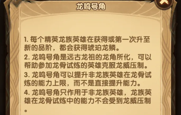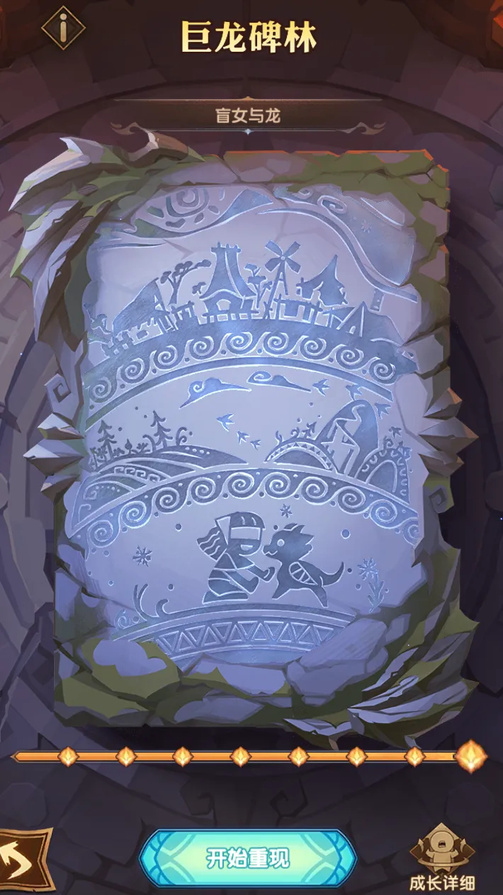 2.巨龙碑林:记载了关于龙族的历史传说。冒险者首次拥有及升阶龙族英雄可获得“琥珀龙鳞”,用于回溯历史传说,提升巨龙碑林的等级,强化所有英雄属性。该功能将在通关关卡8-40且获得4个龙族英雄后解锁。