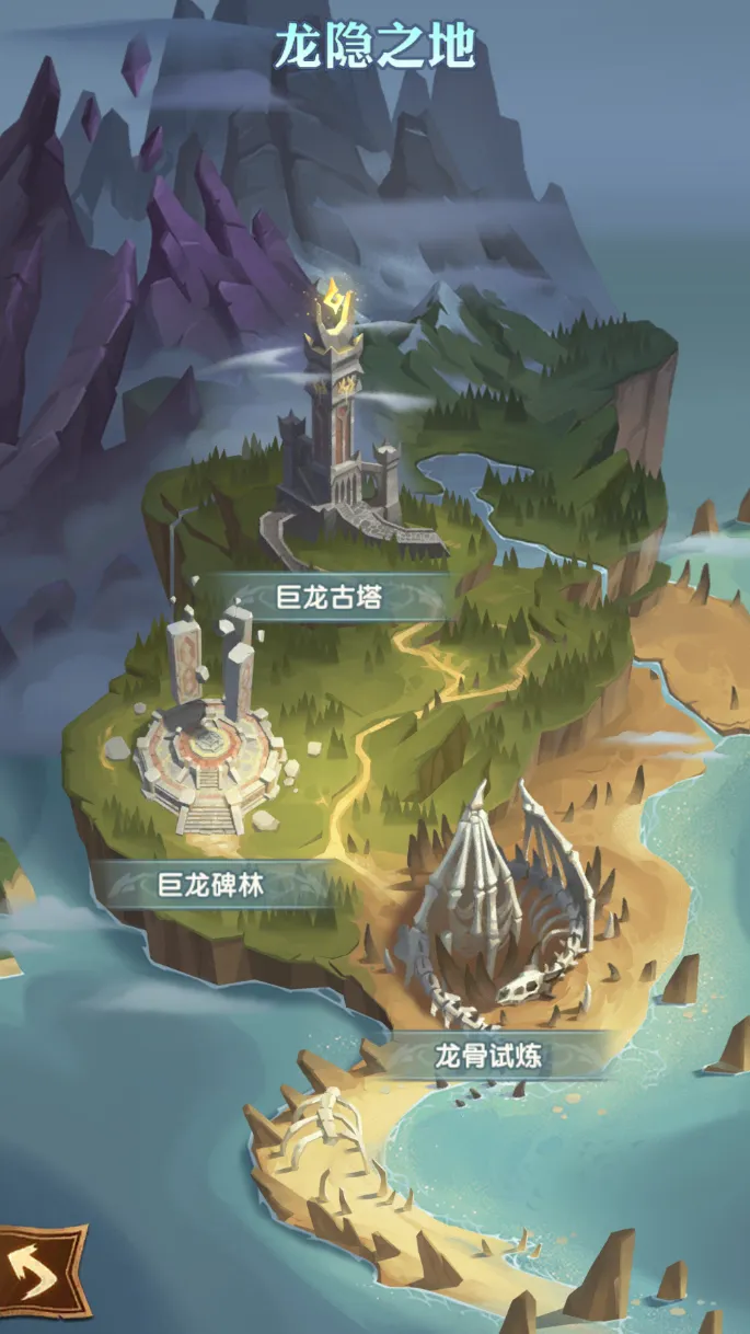 新增“龙隐之地”,通关关卡4-20后解锁,包含“巨龙古塔”、“巨龙碑林"及“龙骨试炼"等多个功能。