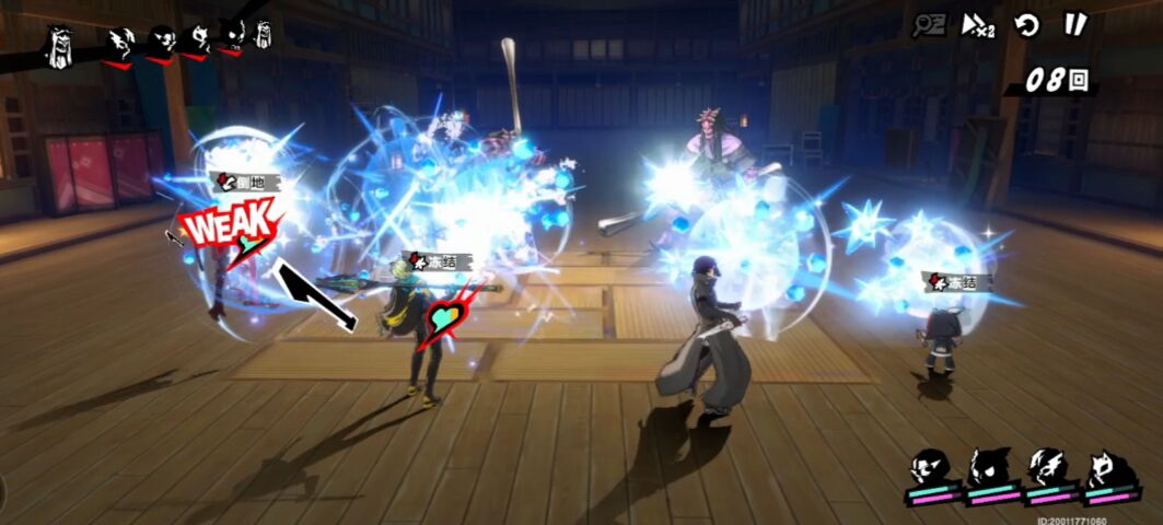 然后主角直接用朱雀面具全体核热攻击,触发weak机制,这时候其中一个水鬼受到2次weak机制已经倒地了。