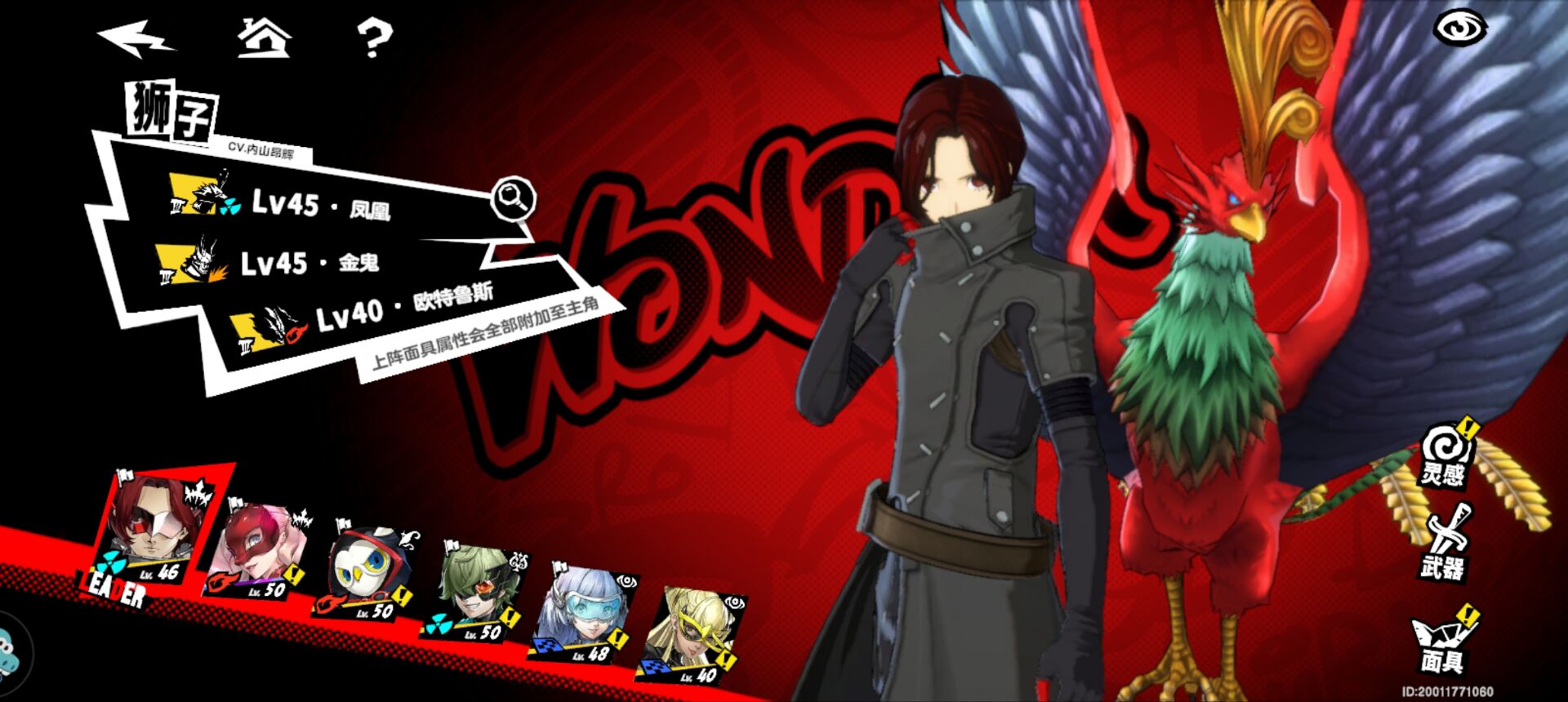 其他2个面具随意!但是凤凰面具一定要带,因为需要靠这个面具打weak机制!