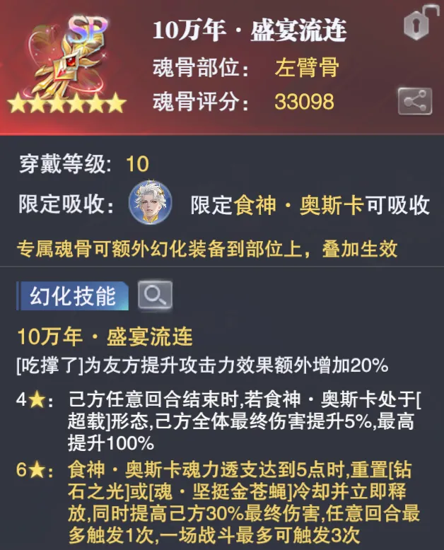 首先第一点这个魂骨售后的上线概率就是100%,那么目前官方所上线的如长图进化魂骨中,其增伤提升的倍率基本上就是从2倍-10多倍左右徘徊,具体的数值就是要看官方想给他多少了,毕竟在官方手里这不就是个数字一般简单么......要不然去年周年庆那会一个拓跋云的进化魂骨直接就是翻十多倍的伤害,岂不怪哉?