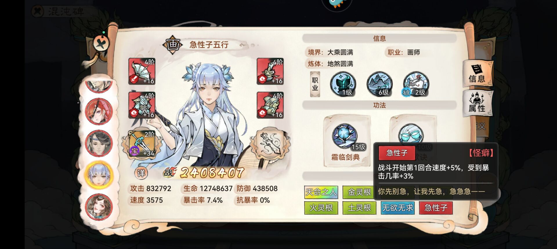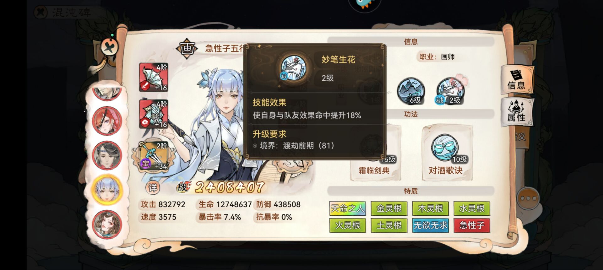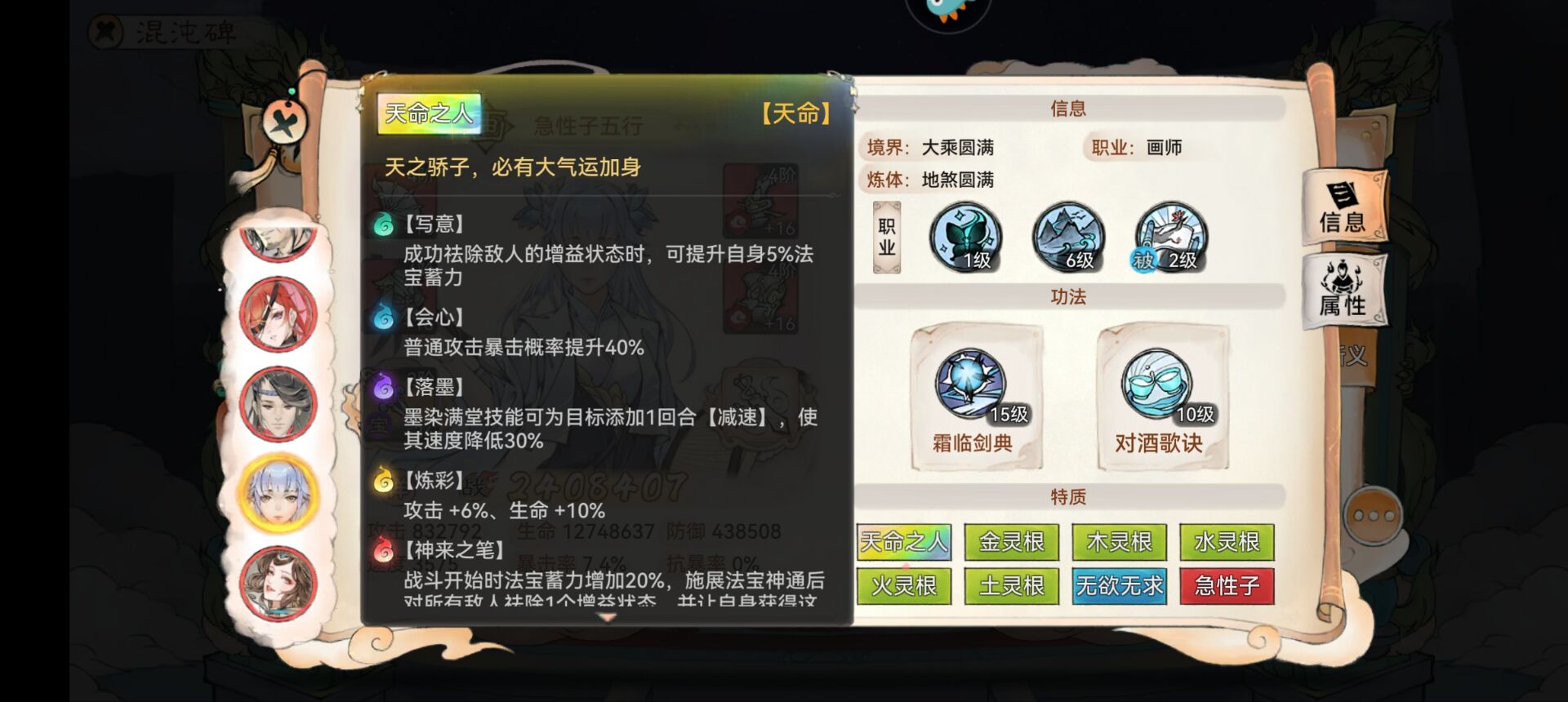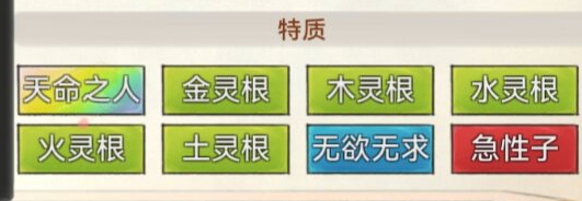 2:画师—特质的选择。特质非常关键,首先必须是五灵根。