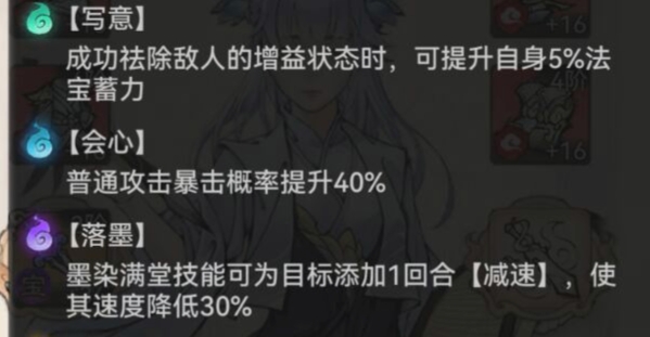 写意祛除敌人的增益就可以增加自身的法宝蓄力速度!