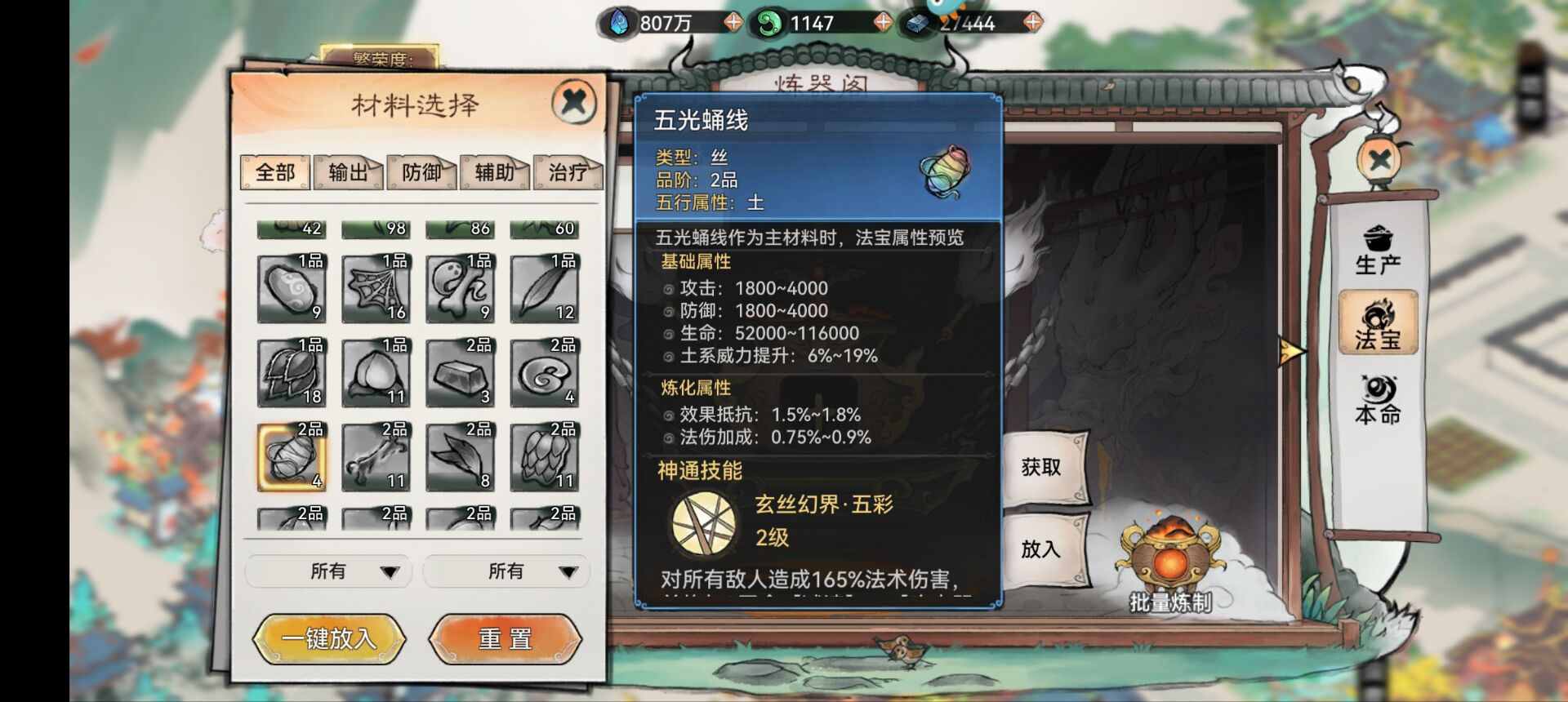 4:画师—法宝推荐。2阶羽毛或者是2阶土丝。