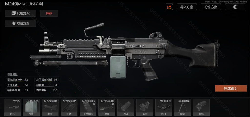 首先是来自科伦方的M249轻机枪,由FA公司研制,采用气动气冷原理,M249的基础属性非常不错,使用5.45x39mm口径弹药,支持搭载50发或100发的大容量弹链盒。