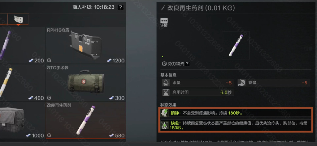 另一个则是,康兰医药的改良再生药剂。使用时仅会扣除少许水量和能量,但能提供持续180秒的镇静和快愈效果。