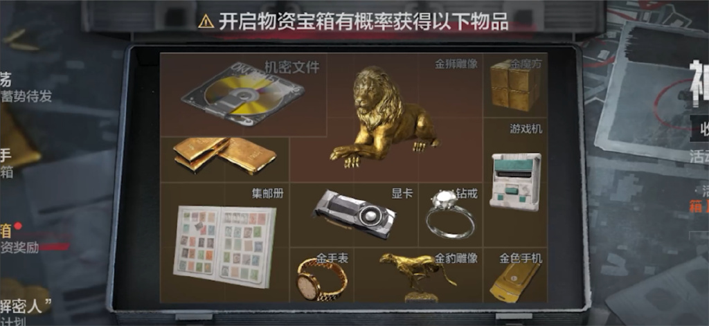 单局内不止一个物资箱可寻找,提交过一次物资箱的小队也可以出发寻找其他的物资箱。提交的物资箱在局外活动页面开启,有概率开出各种金色物品,运气好的话还能开出机密文件呢~