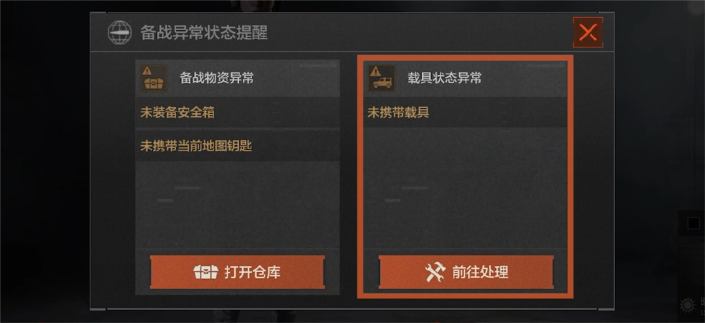 新版本中增加了更多的战前提示,比如进入某一地图,但是带的钥匙不匹配,再比如进入矿区前未携带载具等,都会有相应的提示,减少“望洋兴叹”的遗憾。