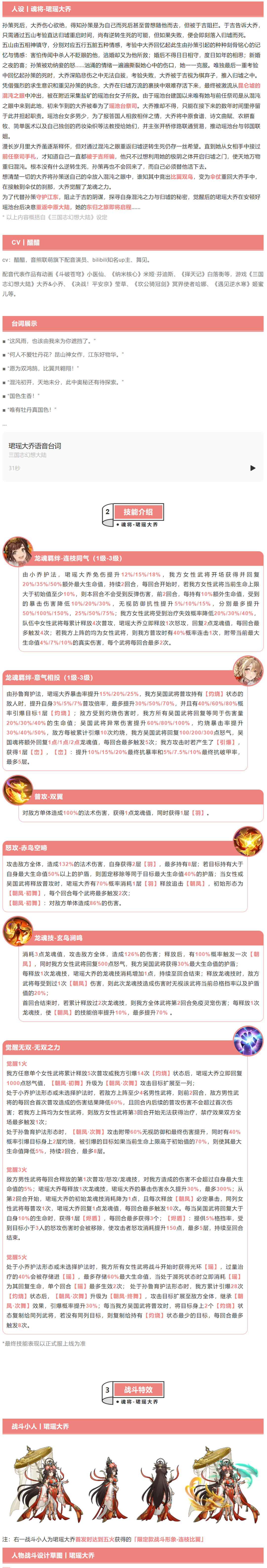 新武将情报|魂将“珺瑶大乔”档案公开!新版本PV发布~勤勉搬运的后辈君发布于 2024-04-23关注新版本即将在4月25日上线~今天一起来看看版本PV吧 01:45 接下来一起来看看“珺瑶大乔”的人设和基础技能吧~ 怒攻 - 赤鸟空啼 龙魂技 - 玄鸟涧鸣 普攻 - 双翼 怒攻 - 赤鸟空啼 龙魂技 - 玄鸟涧鸣 *此为开发中的效果,实际表现以游戏内正式上线为准