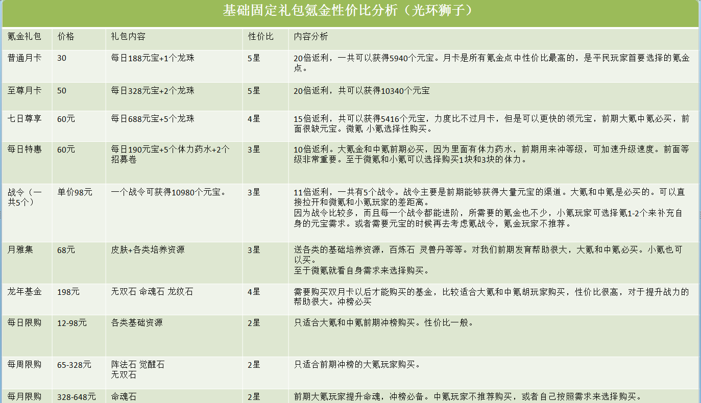 ok,直接进入本期攻略吧!基础固定礼包氪金性价比分析(狮子出品)