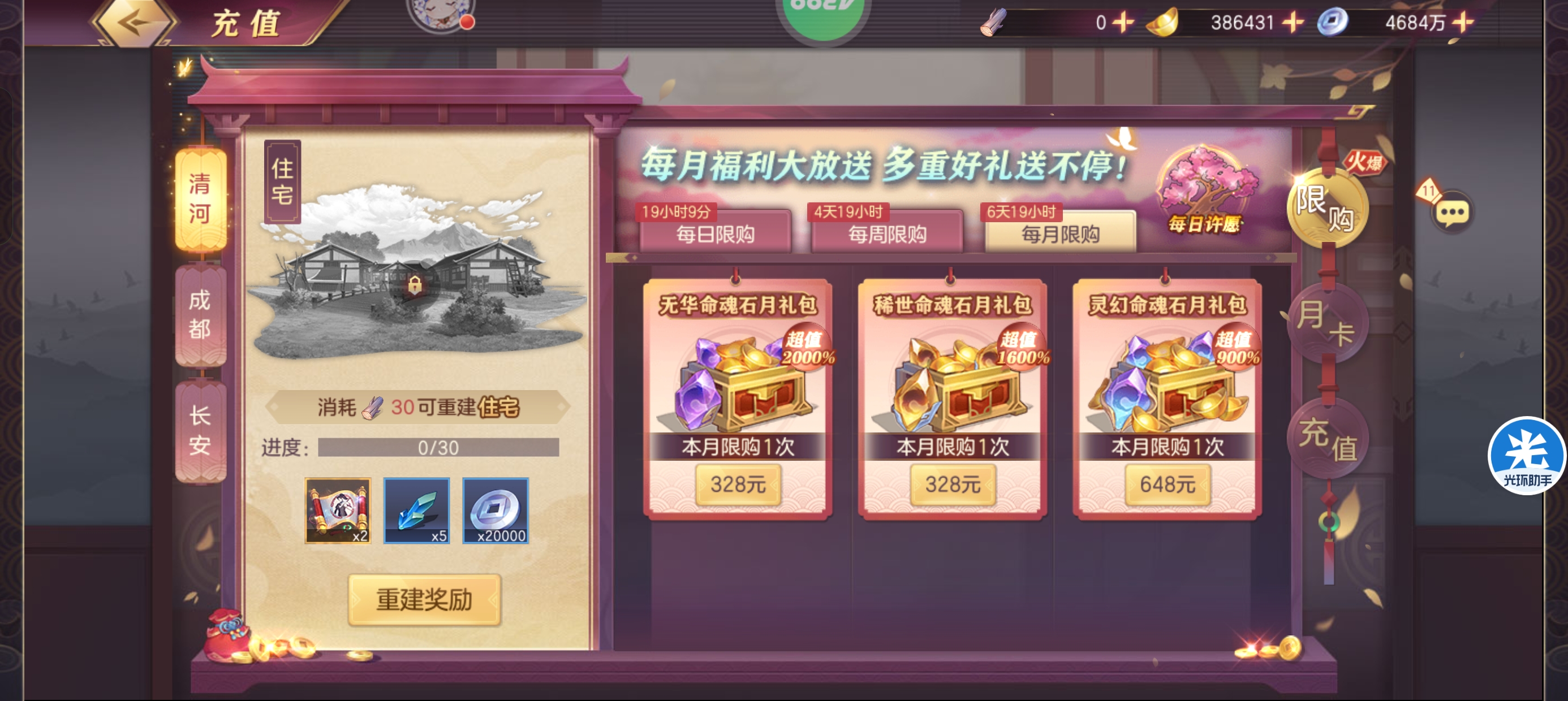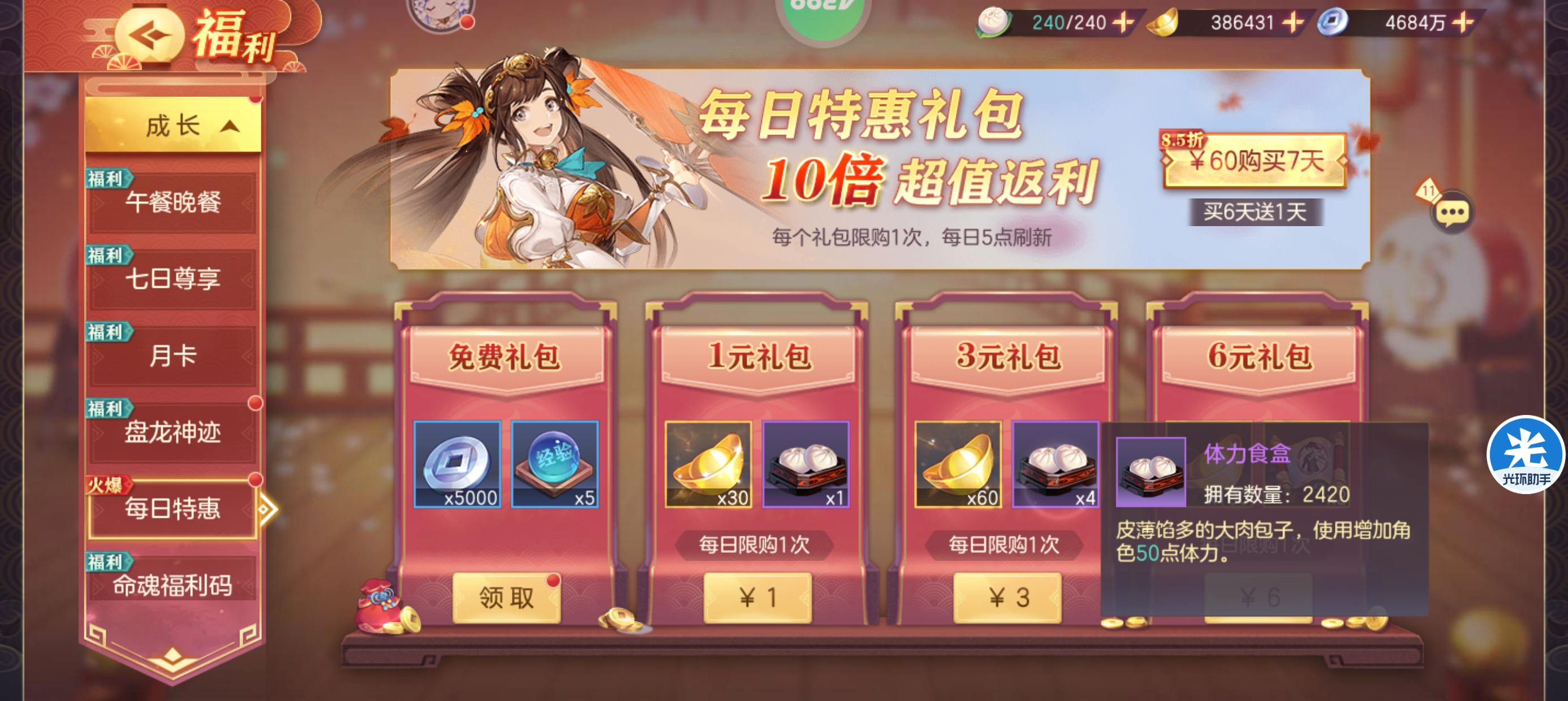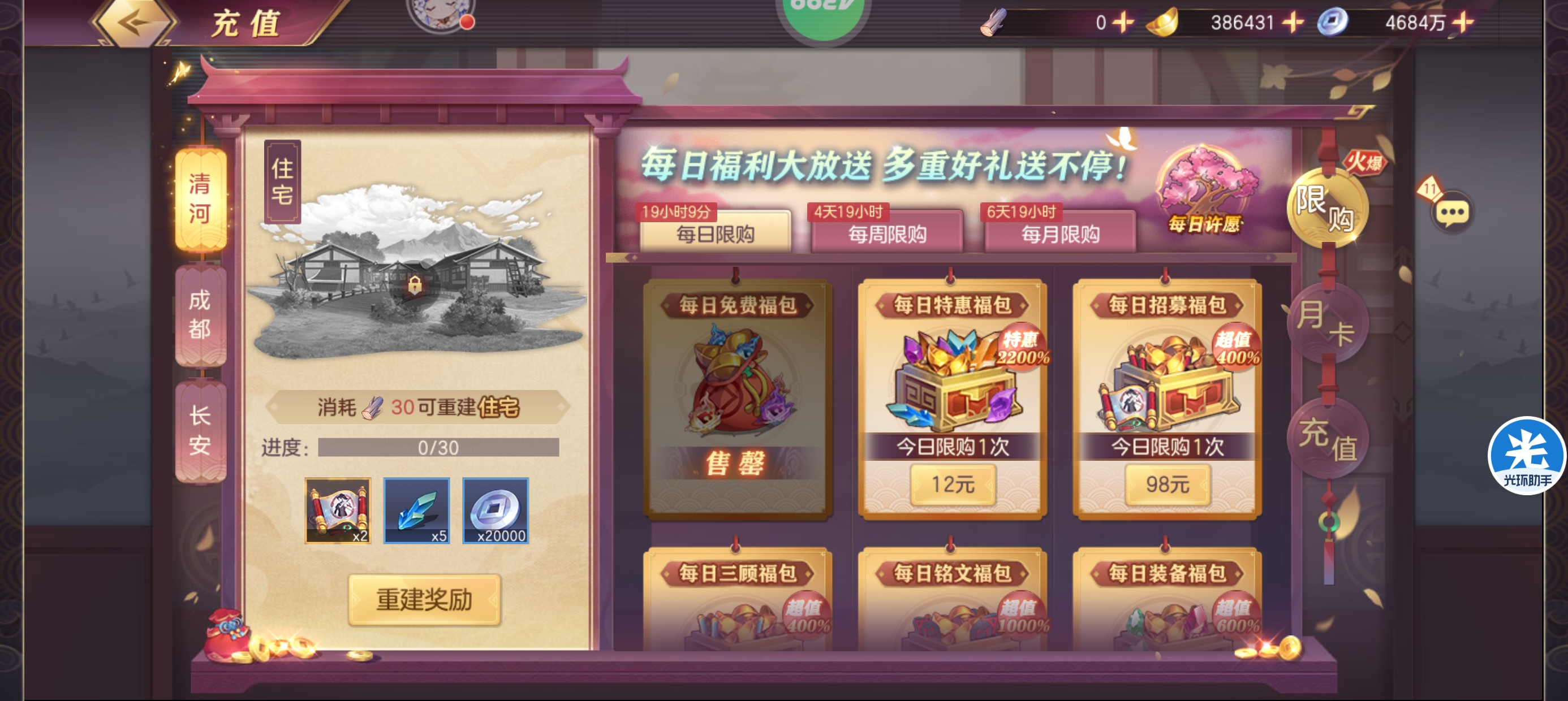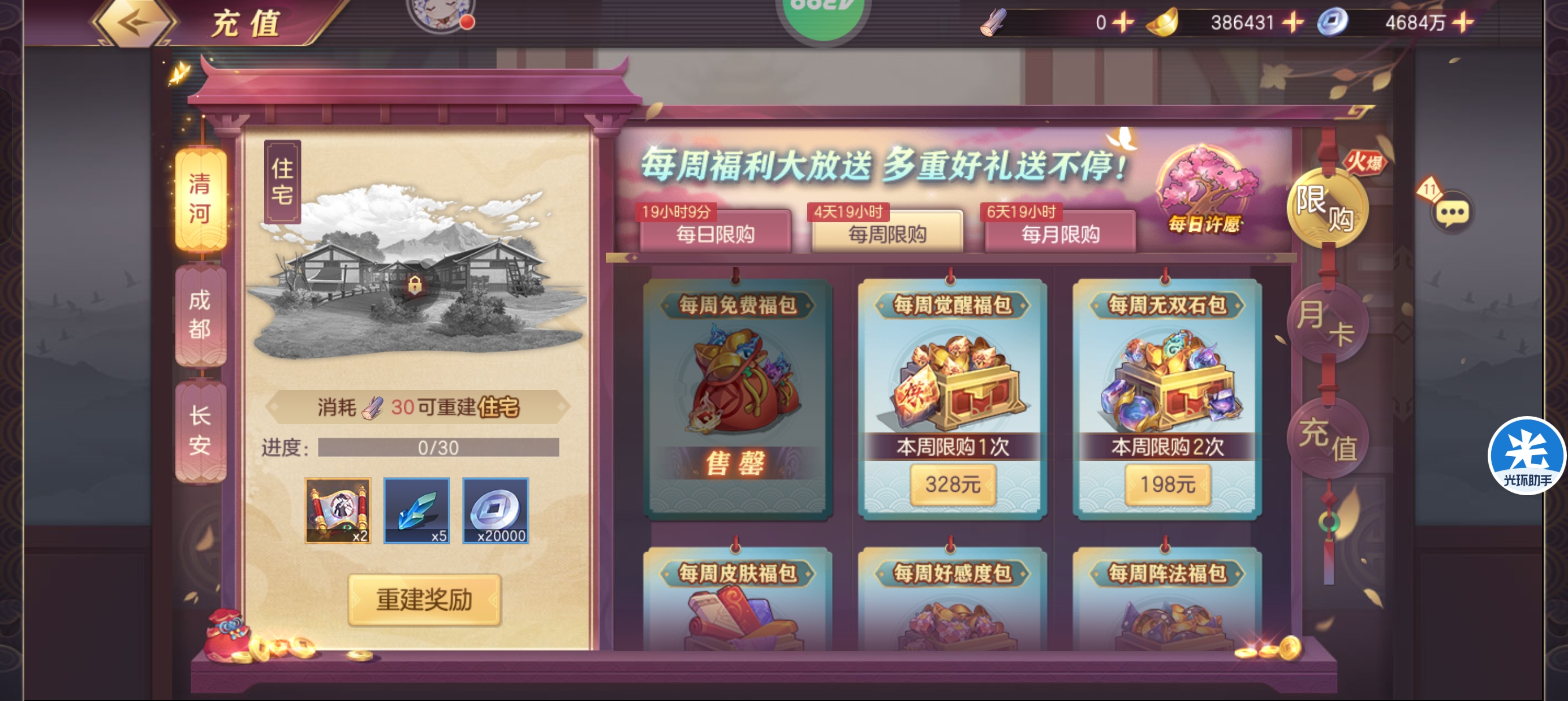 每日限购的招募福包和每周限购的好感度礼包,性价比不高,可选择性购买。