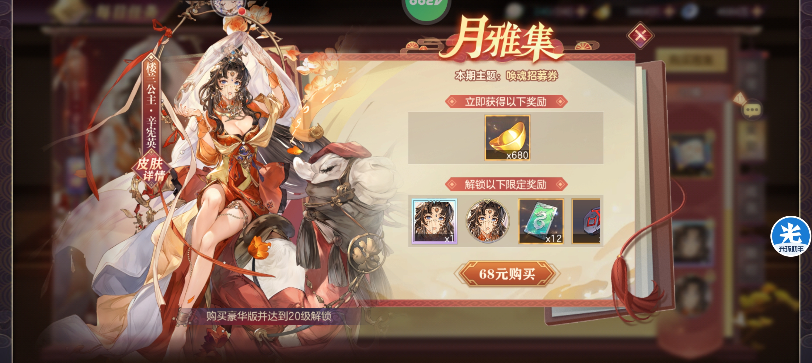 ③购买月雅集。送各类培养资源,还送皮肤,帮助发育。