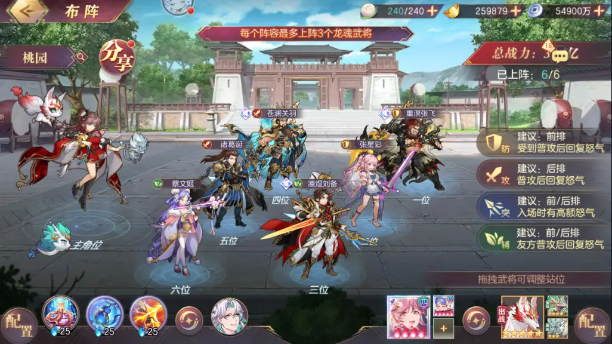 【前期开局】:魂关羽(关银屏羁绊)、司马师、水镜、孙鲁育、魂张飞(关羽羁绊)、张星彩(可替换魂大乔)。