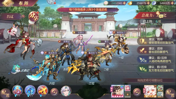 【前期开局】:魂关羽(关银屏羁绊)、司马师(至少3星)、水镜(至少3星)、孙鲁育、魂张飞(关羽羁绊)、张星彩。