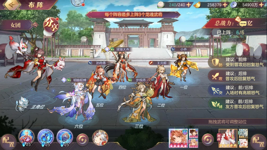 【成型阵容】:魂大乔、魂貂蝉、5命魂小乔、专武步练师、专武王元姬、专武蔡文姬/5命魂孙尚香。