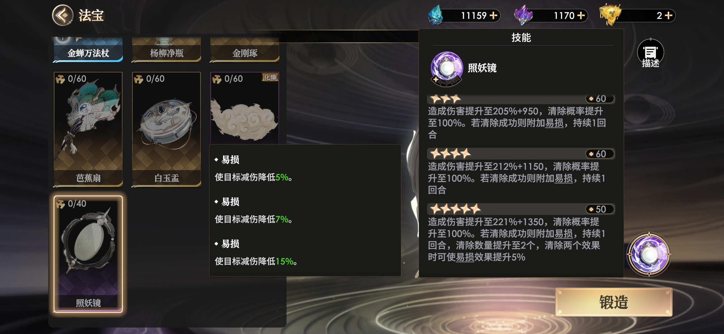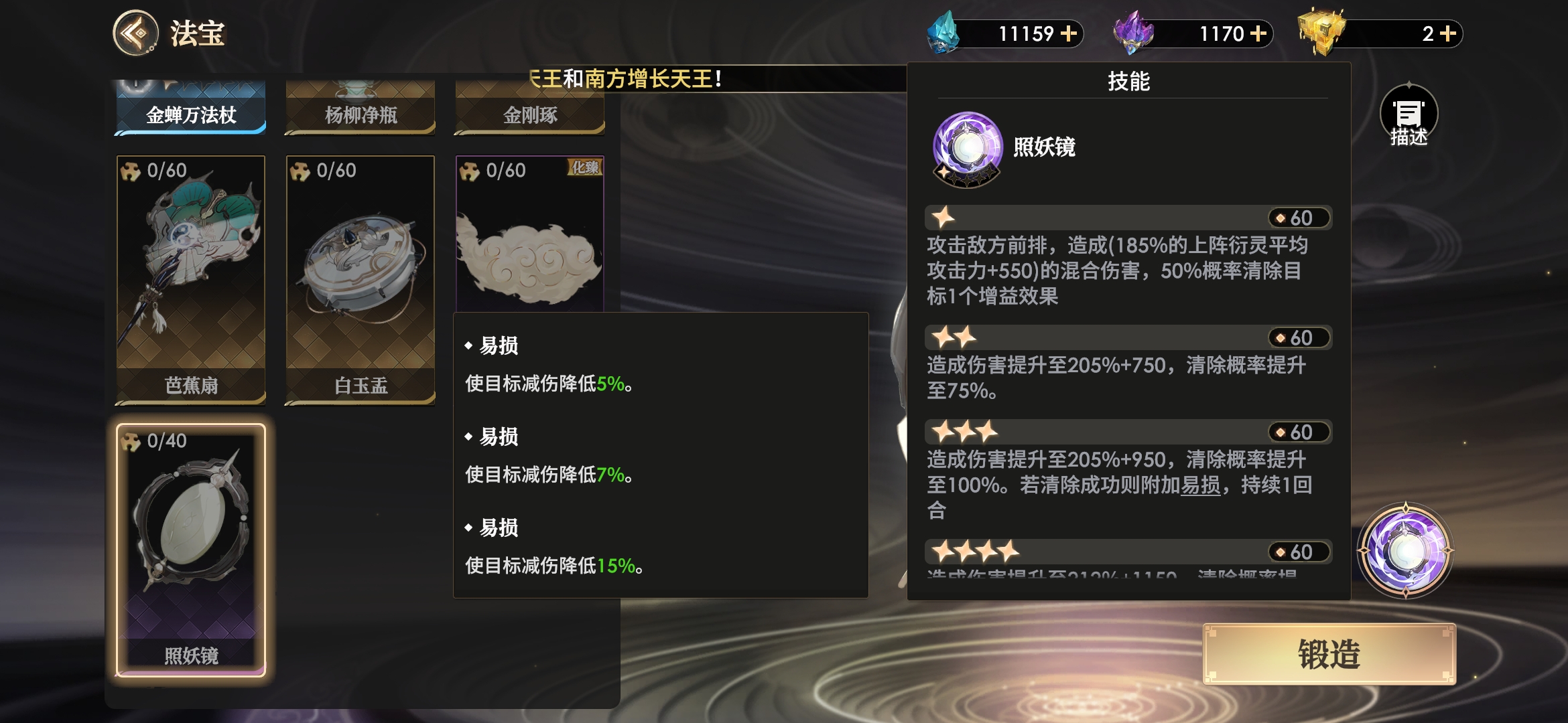 照妖镜在紫色法宝中属于垫底的行列,上面还有更高级的橙色法宝,所以不推荐刻意升到高星使用,仅作为镶嵌真言的架子即可。