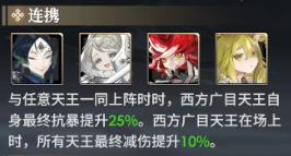 本期为大家带来的是天王光环流阵容,阵容是由三大天王独特的4人连携机制,结合另外3个光环型衍灵共同构成的光环体系。通过光环之间互相叠加可以形成叠加增幅!