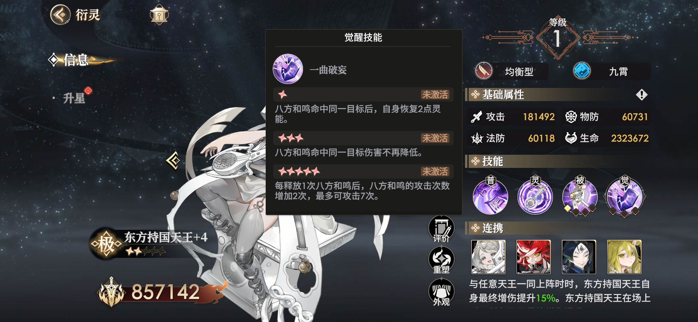 多闻的星级也得升起来,如果你有多余的灵响也可以再拍一点给多闻升星,多的灵响可以给持国入圣,如果太贵了就没必要了