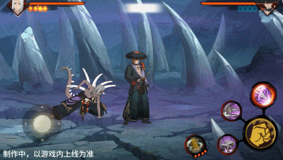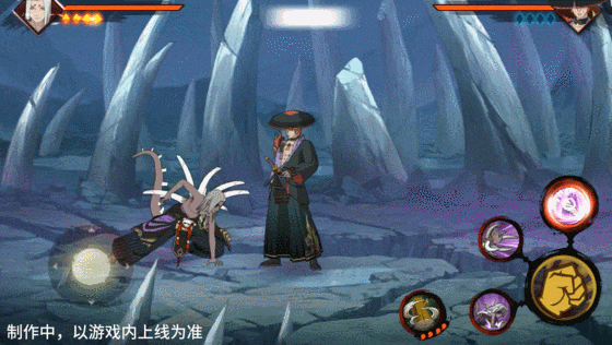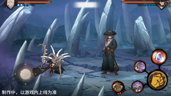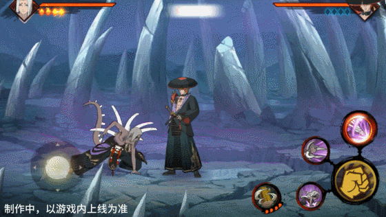 漂泊君麻吕有4颗奥义点时,点击奥义键成功释放,会击飞附近的对手并进入咒印状态,扣除2颗奥义点。随后双方会进入布满骨刺的结界当中。