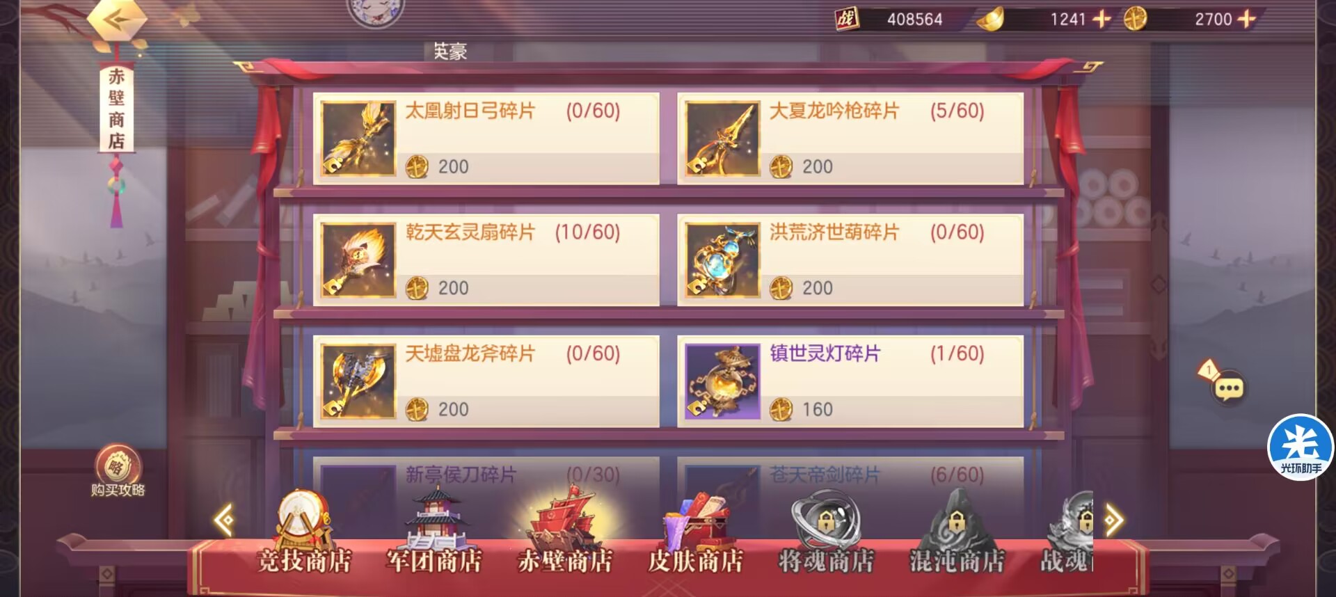 5:【赤壁商店】兑换推荐。赤壁商店是平民玩家前期主要获得神兵的地方。