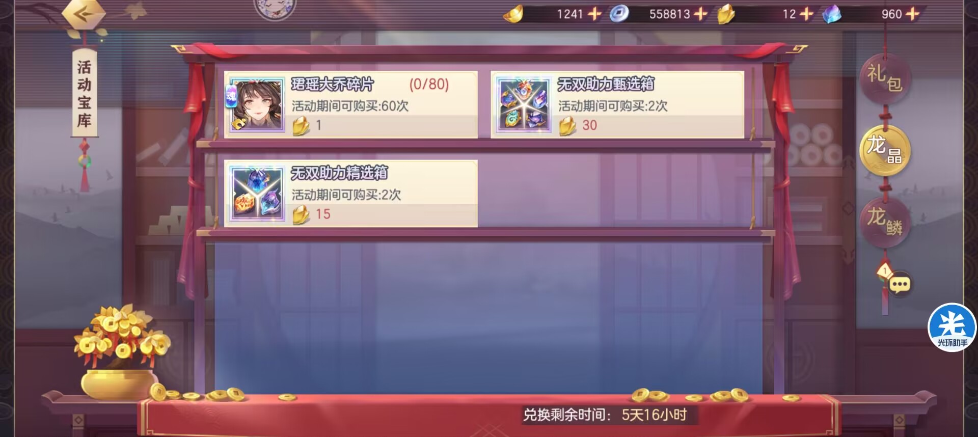 ②如果是玩【蜀控】的玩家。⭐【龙晶商店】可优先兑换:【无双助力甄选箱】和【无双助力精选箱】
